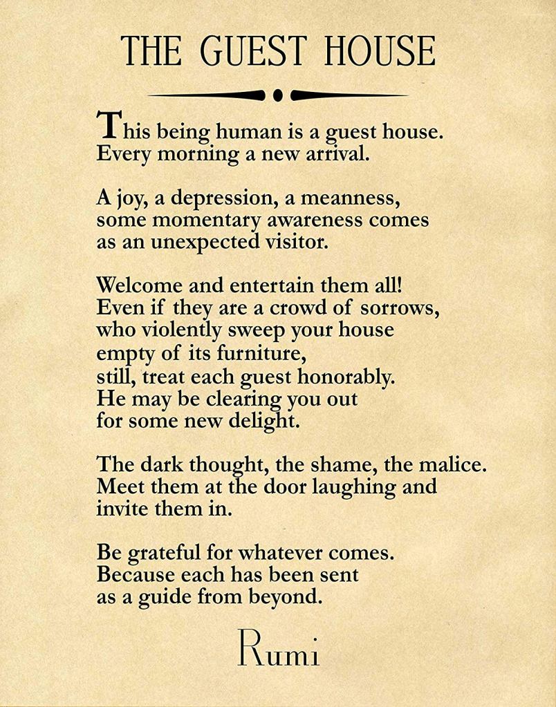 Love the poem and the idea that we need to welcome all emotions, all aspects of ourselves to truly accept and befriend ourselves. Glad you’re feeling lighter now!
